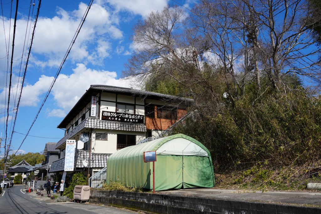 たくさん歩いた後のランチは、亀石のすぐ近くにある名店**「めんどや」**さんへ。 明日香村の名物、にゅうめんをいただきました。 優しいお出汁が体に染み渡り、歩き疲れた体に最高のご褒美。これぞ明日香村の味ですね。